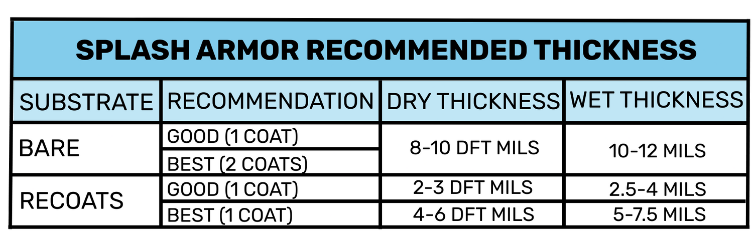 SPLASH ARMOR SYSTEM RECOMMENDED THICKNESS